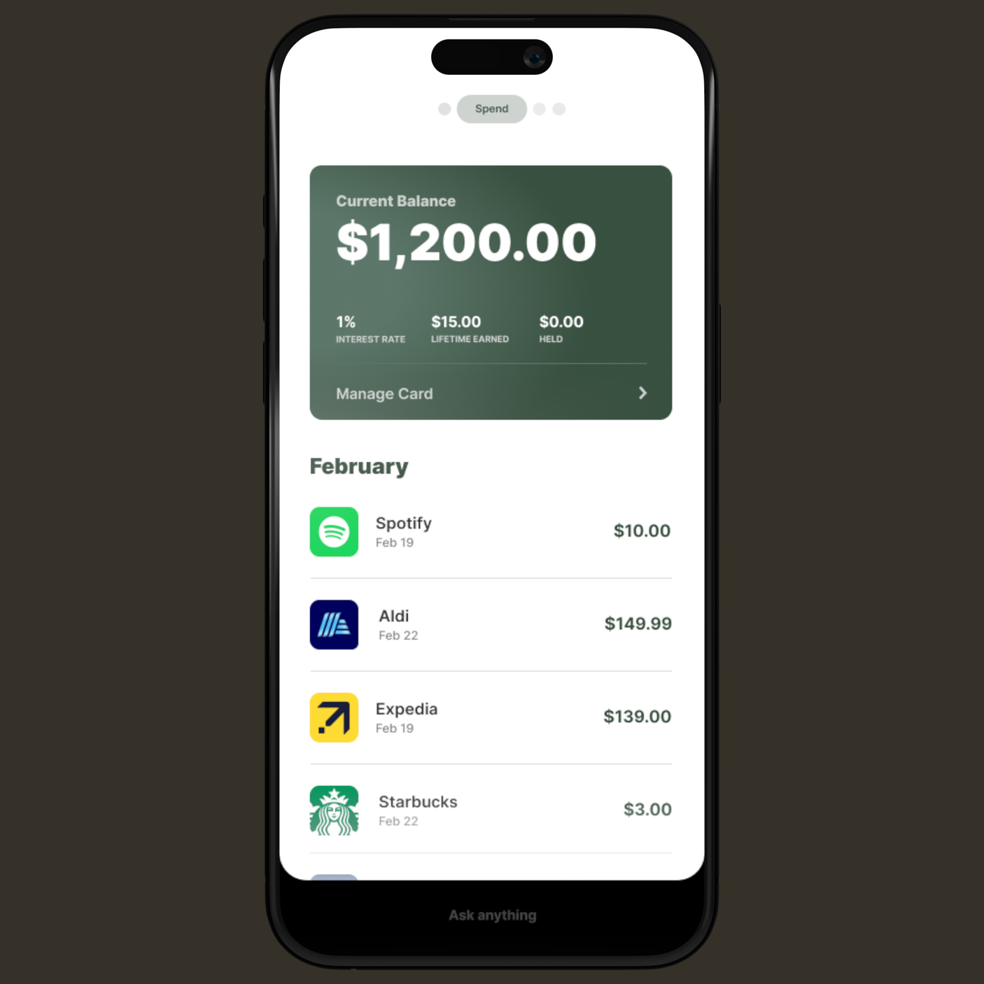 The money you keep for groceries grows in the background with our 3.25% APY high-interest savings account.